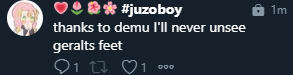 Hi, I’m Demu!I have a BFA in digital art. I graduated from UWF!My interests varies from tabletop things such as D&D , and to a bunch of animes! I also am a very big gamer mostly on the PC, and then I also like indie RPG and Otome!My main interests right now are The Witcher series, Bloodborne, Critical Role, Castlevania, FFXIV, End Roll, Satsuriku no Tenshi, Sally Face, Witch's Heart, Your Turn To Die, OKKO, Tales of Arcadia, Hollow Knight, The Penumbra Podcast, Touken Ranbu, Sonic, and The Adventure Zone.